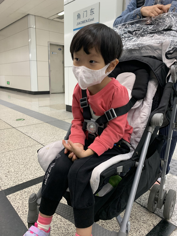 今天准备去园博园,考虑到今天有雨,这个婴儿车有遮雨罩,就带她到地下室,把婴儿车找了出来。
