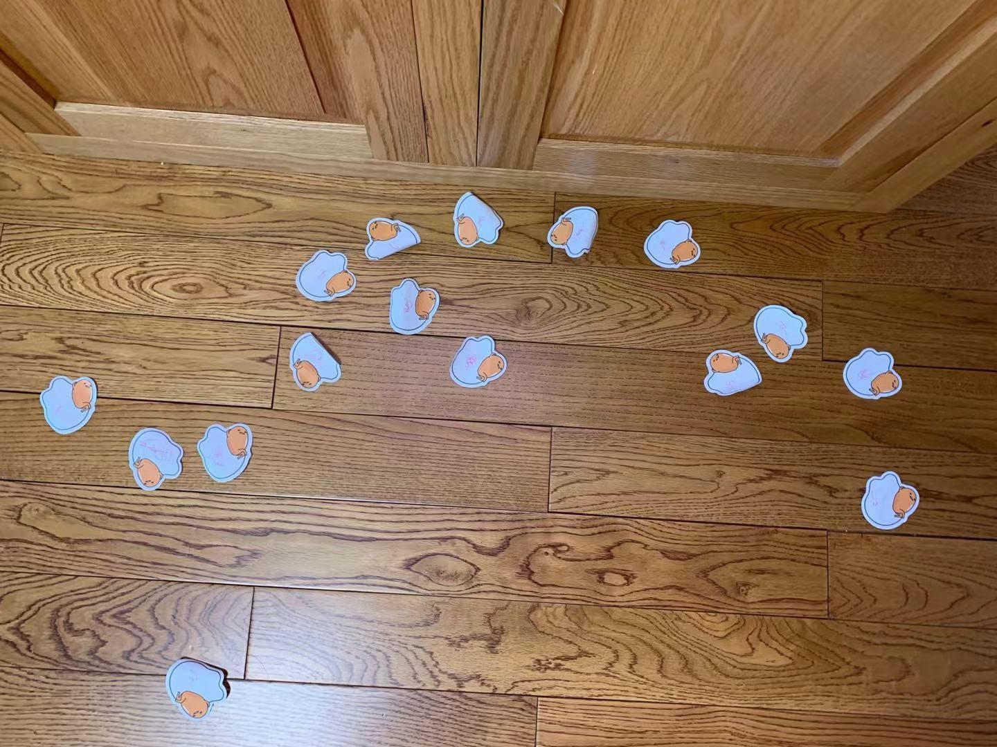 吃完饭到客厅,发现地上铺满小纸条。