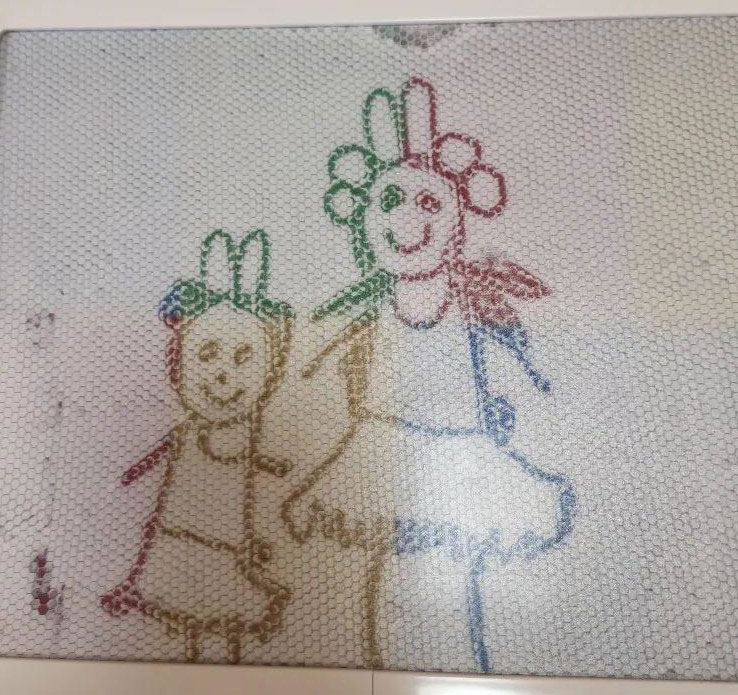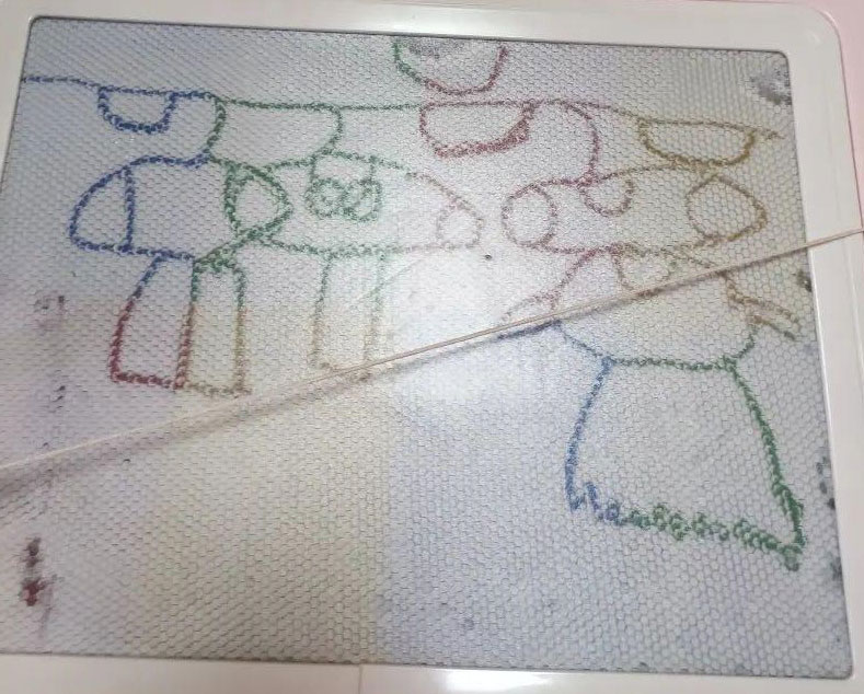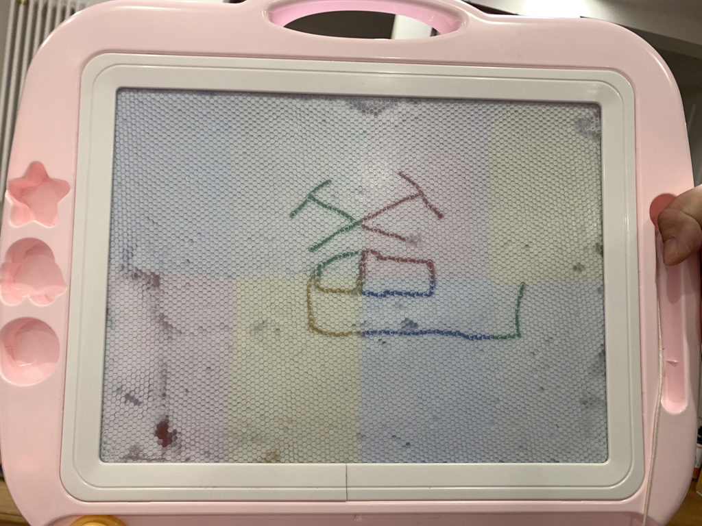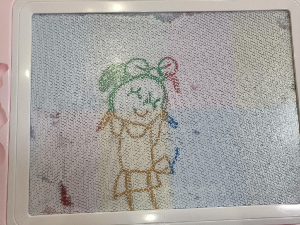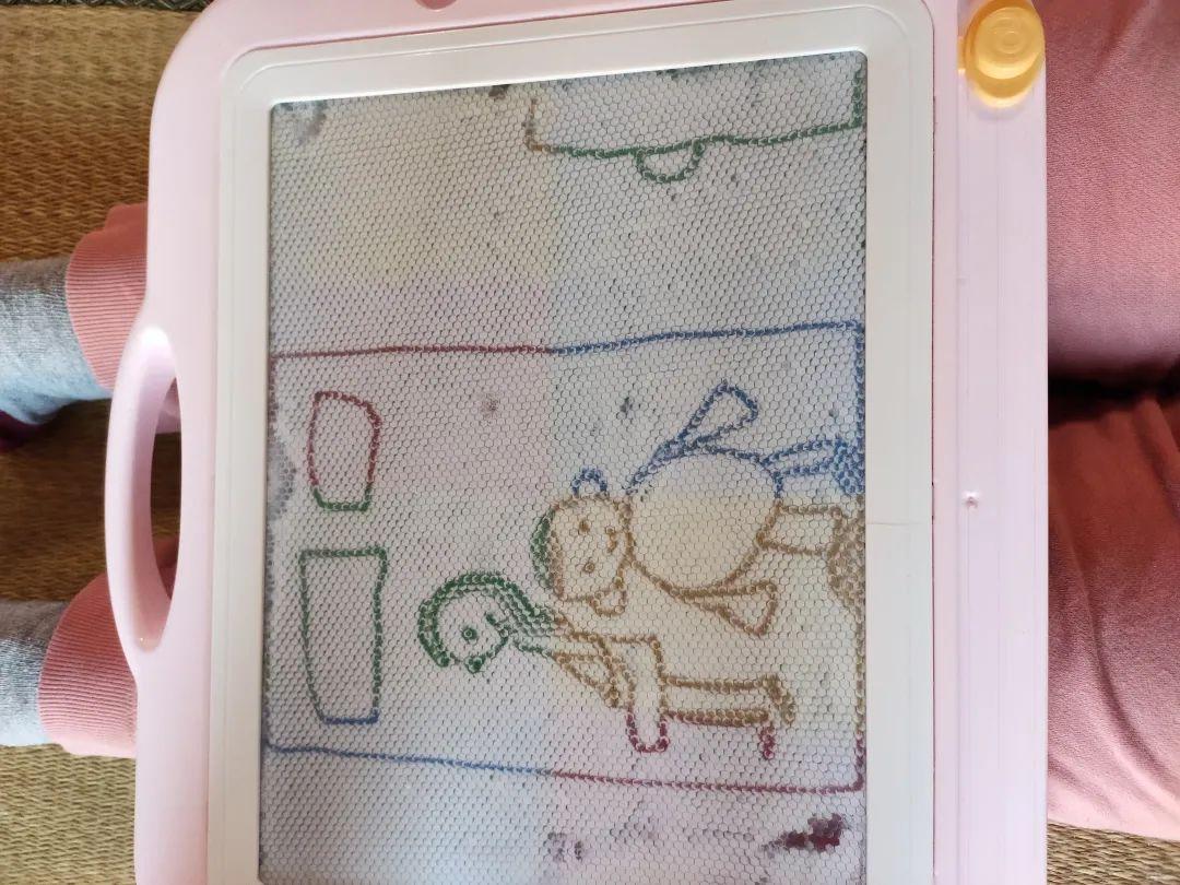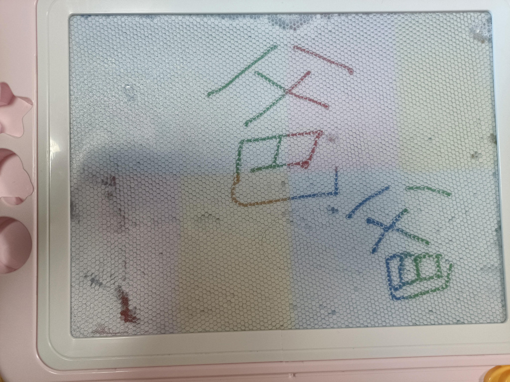 前两天星鹭让爸爸教“爸”怎么写,爸爸写完,星鹭照着写了一遍,把“巴”里的小竖写了两道。今天晚上自己在画板上独立写了下来,高兴的拿给爸爸看看。