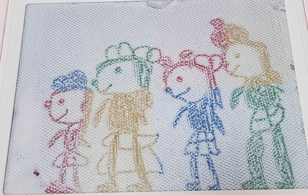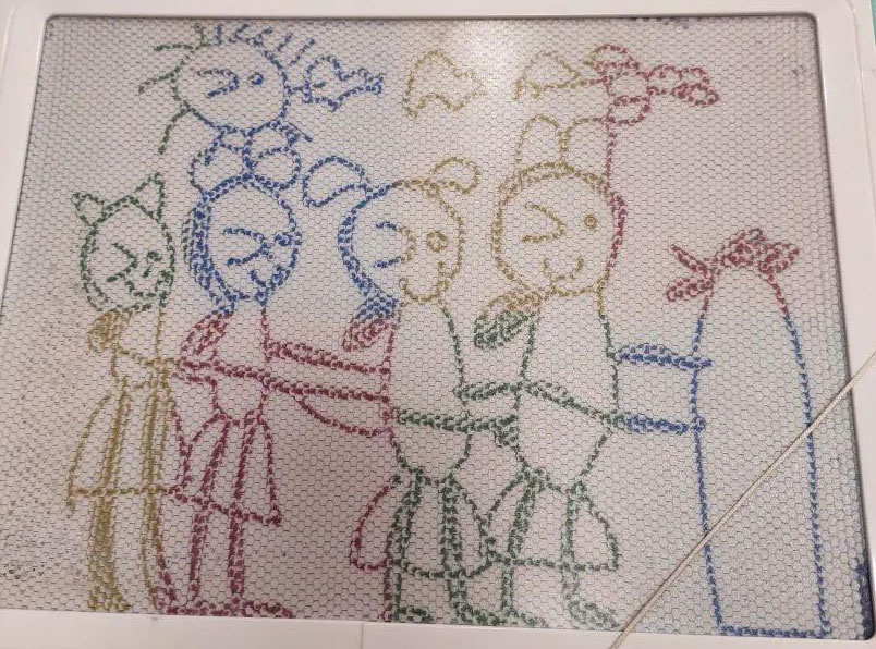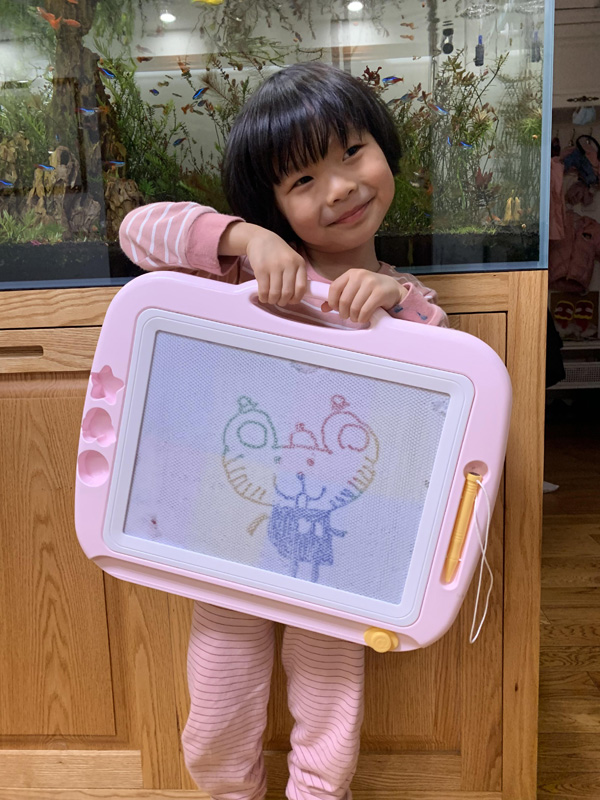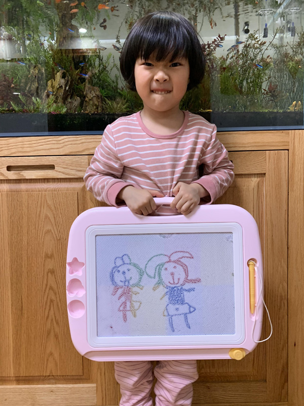 爸爸想把星鹭前两天画的画发到博客,但是当时拍完忘了星鹭画的什么内容,一直问星鹭“这是画的什么?”“这个呢?”